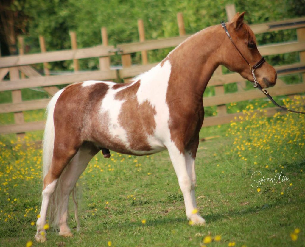 Couleur : Chestnut Pinto Sexe : mâle Père : Oak Bay Mi Amigo Mère : Lucky Four Rebelchase My O My Taille : expected height 32″ Papiers : AMHA/ AMHR Description : Poulain né en 2023, propre frère de EBF Mi Sylvinia Bey né en 2022 et 2 fois Réserve Grande Championne Jument Junior 2023