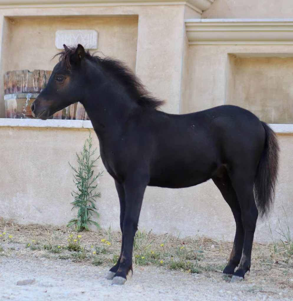 Couleur : Noir Sexe : mâle Née le : 07/05/2025 Père : SCS DK Wildfire Mère : Reality Next Top Model Taille : Papiers : AMHA/AMHR Description : Contact: Rhéa Horses Miniatures