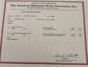 Description : Poulain né en 2023, propre frère de EBF Mi Sylvinia Bey né en 2022 et 2 fois Réserve Grande Championne Jument Junior 2023 en seulement 2 concours. Magnetic possède une superbe conformation avec une encolure et une tête extrême. Il mesurera 32 inches grand Maximum adulte.